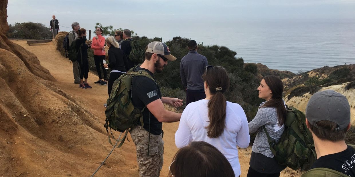 These programs provide a morning or afternoon hiking adventure at any one of a dozen compelling and beautiful locations within San Diego County. From Torrey Pines State Reserve and Los Batiquitos Lagoon on the coast, to the inland Elfin Forest Recreational Reserve and Otay Valley Regional Park and myriad other open space areas, our team of engaging and accomplished Navy SEAL, SWCC or other military Instructor-Guides take guests on fun and educational hikes of varying topographies and natural environments. All hike programs are customized to the desires of the client group, and can be modified to increase or decrease the physical nature of the activity. None of our programs are hard-core bivouac or mountaineering sessions, so guests don’t need to worry that the program will be difficult or grueling. These hikes are all about FUN!
